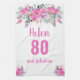 Elegantens utformning för en 80:e födelsedagsfest med rosan "80 och fantastisk" och ett skript namn som är förskönat av en feminin vattenfärg blommor på vit bakgrund. Anpassa ålder, text, namn och bakgrund färg.