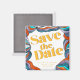 Letar du efter ett unikt retro-moderna och trendigt bröllop save the date? Titta på vår retroinspirerade Unik Djärv Boho Groovy Retro Gul Färgrik Vågig magnet! Denna vågiga save the date har vacker akvarell handmålad vågig linjekonst med en färgrik och boho abstrakt design som ger en unik och trendig look, perfekt för ett retrobröllopstema.