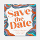 Letar du efter en unik retro-moderna och trendig magnet för att spara datum för bröllop? Titta på vår retroinspirerade Unik Djärv Boho Groovy Retro Vågig Spara Datum-magnet! Denna vågiga magnet för att spara datum har vacker akvarell handmålad vågig linjekonst med en färgrik och boho abstrakt design som ger en unik och trendig look, perfekt för ett retrobröllop.