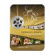 Ljus, kamera, action! Denna eleganta och unika bröllopsinbjudan i form av en magnet presenterar tre fotografier av bruden och brudgummen på en Hollywood-filmrulle. Glamorösa färger inkluderar metalliska nyanser av champagne, guld, brons, tenn och silver. Tips: Använd funktionen Anpassa för att förminska/förstora eller placera dina foton.