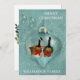 De här små killarna är klädda för helgdagarna i detta heliga prydnadskort - fyllt med snö och fred. Ja, det här är ett unikt kort - med julgäss inuti ett prydnadsföremål - klädd i en krans och röd båge, i snö.