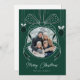 Sprid glädje under högtiden med detta festliga vykort med en handritad rosett som kröner ditt favoritfoto i en rund ram - vilket ger intrycket av en festlig julgransprydnad. Det eleganta gröna och vita vykortet innehåller 'God Jul' i en handskriven typsnittsstil och ditt anpassade familjenamn under.