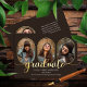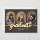 Klassi och unika avlånga foton med 4-fotokollage studenten-meddelande med guld-tonsrimmade fotomallar och guld-tonad student-text. Lägg till student namn, klassår och skola på framsidan tillsammans med tre foton och lägg till ett separat foto- och fullt-meddelande på baksidan. Ursprunglig design efter Helgdag Hearts Designs med platshållarfoton från fotomallen, benäget Omid Armin via Unsplash.