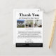 Detta unika vykort för tack efter visning av fastighet är det perfekta sättet för fastighetsmäklare att lämna ett bestående intryck på potentiella köpare efter en visning. Med en elegant svart-vit bakgrund är detta eleganta och professionella vykort utformat med en anpassningsbar tack-meddelandemall, en mall för tre foton av fastigheten och en QR-kod, vilket gör det till ett kraftfullt uppföljningsverktyg. Att uttrycka tacksamhet på ett genomtänkt och personligt sätt kan bidra till att stärka relationerna med potentiella köpare samtidigt som det förstärker ditt varumärke. Oavsett om du är en erfaren mäklare eller precis har börjat är detta tack-kort ett viktigt tillägg till din marknadsföringsstrategi för fastigheter.