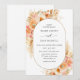 Önska gästerna med inbjudan till elegant bröllop med en vacker oval båge med riklig vattenfärgad blommigt inslag som omger dina bröllop-detaljer med blommor, blad och pampasgräs i en vacker blandning av persikor, orange, rosa, taupe, kräm och champagnenyber. Förmåga att byta "tillsammans med sina föräldrar" till "tillsammans med sina familjer", "tillsammans med underbar glädje" eller "tillsammans med underbart nöje". Bakåt i vitt, som kan ändras till valfri "bakgrund färg" genom att markera knappen "Redigera med design verktyg" i slutet av malltextrutorna. En del av vår "Peach Blommigt Delight and Champagne Cream"-samling med en mängd olika samordningsprodukter tillgängliga. Besök hela samlingen på: https://www.zazzle.com/collections/peach_floral_delight_and_cream_champagne-119627301812293761