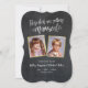 Unik information om Sparat datumet förlovning med gamla barndomsbilder av bruden och brudgummen. Meddelandet lyder: "De här barnen är gifta sig." Utformningen har ett modernt handskript med en kritbakgrund och faux guld ramar. Ladda upp gamla bilder av bruden och brudgummen i roligten när de var barn och anpassa texten.