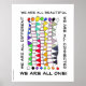 Denna konst i hand plockade skapades för att fira mångfalden skönhet och den insikt som vi alla är genom vår gemensamma del av denna planet, luft, vatten och sol. Vi är alla i den unika kampen och skönheten att vara människa. Och vi förtjänar alla respekt och stöd från våra medmänniskor. Denna poster skulle vara en underbar gåva till en vän eller familjemedlem som delar dessa värderingar. Det finns också på andra produkter i min butik. Säg till om det finns en produkt du inte ser den på att du skulle vara intresserad av. Denna konst skapades av konstnären/designern, Judith Schmidt, och är upphovsrättsligt skyddad.