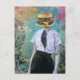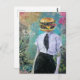 Ett blandat mediesamling av en kvinna i en vit skjorta och svart slips och byxor med en ostburgare för ett huvud som står i växterna, en surrealistisk unik AI-teknik som skapats av Angelandspot