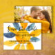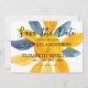 Unikt och konstnärligt blått och gult akvarellblomma bröllop Spara datum-kort. Personifierat med ditt foto på baksidan. Köp tryckta kopior eller beställ digitalt för att dela med vänner och familj via e-post eller på dina sociala medier.