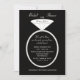 Det här unika svarta inbjudningskort för möhippan har namn i en diamant och inbjudningsdetaljer i ring. En mycket unik inbjudan till en möhippa. Copyright henishouseofpaper