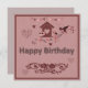 Ett unikt födelsedagskort som säkert är en glädje för den speciella personen i ditt liv. Grattis på födelsedagen, klipphus och fågelkort. Det här är ett hälsningskort med komplicerade detaljer för vem som helst. Rosewood tones i färg. Snygg, unik design med lättnadsbrev. Födelsedagskort för skriva av personligen på baksidan.