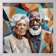 Denna geometriska pjäs framställer ett äldre par med kärlek och frid, med hjälp av färgglada trianglar i varma och svala toner. De sammanflätade formerna symboliserar ett delat liv, medan levande färger framhäver styrkan och harmonin i deras anknytning över tid.