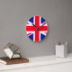 Runt väggklocka med bilden av Union Jack flagga.