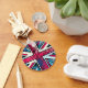 Colourful keychain featuring stylized union jack flag.