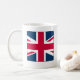 Drink your tea or coffee from this Union Jack mug featuring the British flag in a large square design. Whether you come from British descent or just love British culture and music, this mug fits your Anglophile proclivities to a T. Order your Union Jack mug today.