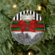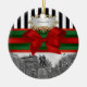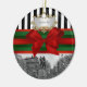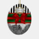Unionsruta NYC på vintern, Svarta och vita Rand, Rödfärgat och Grönt Anpassade för ornament med en svart och vit syn på New York City's Union Square Park på vintern, lätt täckt med snö. Den har också ett svartvitt strippat mönster, rött band och grönt, rött båge samt en vit övertoningsetikett där du kan välja ett silver eller guld som ser ram. Observera att detta är en grafisk design och inte innehåller några egentliga tyger, metall eller prägling. 2012 ©NYCisMyMuse Alla höger reserverade