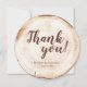 Send a heartfelt and unforgettable note of gratitude with this Rustic Wood Cut Wedding Thank You Card—a round keepsake that’s as unique as your love story. Designed to mimic the natural beauty of a tree ring slice, this one-of-a-kind thank you card features your wedding photo, names, and wedding date, all wrapped in cozy rustic charm.