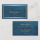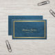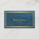 Classy luxury vintage style elegant calligraphy business card with a faux gold metallic frame over a blue leather look background. ++++++++++++ Suitable for exclusive beauty salon, luxurious boutiques,beautician, interior designer, makeup artist, hair stylist.