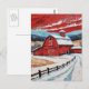 Unique Red Winter Barn Painting Vykort
