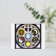 Rehnbergs minnesfönster skapades 1974 av Rockford, Illinoiskonstnären, Frank Houtkamp för den unitarian Universalist Church i Rockford, på uppdrag av Axel F. Rehnberg (1883-1966), en uppfinnare och medgrundare av Rehnberg-Jacobsen Manufacturing Co. Symbols som börjar på topp och fortsätter moturs: Den keltiska Kor-kristendomen Åtta-talade Wheel-Buddhism Yin & Yang-Taoism Star of David-Judaism Sign of OM-Hinduism Star & Crescent-Islam Chalice (center)- Unitarian Universalism.. De sex stora religionernas sammanflätande och cirkulära representation visade att de alla samma strävan efter mening. Den centrala symbolen för den flamande schalisen representerar Unitarian Universalismens vilja att acceptera insikter från alla dessa religionstraditioner, liksom en beslutsamhet att utforska alla nya sammandrabbningar på sanning och förståelse. "En av de mindre talade fördelarna med att leva i detta universum är att om man ritar en cirkel och sex andra cirklar som är identiska med den på var och en av dess 60-gradie, kommer alla sex att avstånd från centrum. ljug alltid samma avstånd av varandra. Enkel matematik ger olika skäl och till och med "bevis" på detta faktum baserat på liksidiga trianglar, parallella linjer osv., men dessa skäl är bara verktyg till förståelse - relaterade fenomen - men lika mystiska och möjliga att förbättra. Det finns dock en underliggande sanning i dem som de inte kan existera utan. I de sex kretsarna skildras symboliskt sex traditionella människor av väg som har lärt sig att uppleva och minnas sanningen. Trots deras olikheter är de alla bundna av universums lagar. Liksom de förreglande kretsarna överlappar dessa lagar varandra, oändliga och svåröverskådliga. Var och en av dem är en spegel-bild av centrum, men var och en omfattar oändlig sort."-Frank Houtkamp Creator of Rehnberg Window