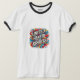 T-shirt-designen för "United Hearts Free Spirits" innehåller fetstilt text med flera färgader i pulserande nyanser som rött, blått, gult och grönt. Abstrakt mönster, inklusive de sinsemellan sinsemellan sinsemellan och som flyter vinkara, symboliserar enhet och frihet. Konstruktionen har en stark och upplyftande känsla, med mjukt, snurrande linjer som framkallar rörelse, harmoni och tillsammans anda. Det skapar ett dynamiskt, visuellt tilltalande utseende utan använda av någon personbildsversion.
