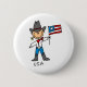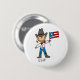 Den gulliga stick figurcowboyen röda iklädda patriotiska USA, vit och blåtthåll och vinkar US-flagga på anpassadet USA knäppas, kort, muggar, Tshirts, mousepads och mer!