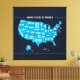 A clean, modern illustration of the United States map featuring clearly labeled states in a bold teal color over a deep navy background. This minimalist geographic design blends education with contemporary style, making it perfect for map lovers, students, and anyone who appreciates simple, well-balanced visuals. The clear state outlines and high contrast ensure easy readability while maintaining a sleek, modern aesthetic suitable for home décor, learning spaces, and interactive experiences.