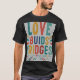Fira kraften av kärlek och enighet med vår T-shirt-design "Unity in Love". Mot en säker bakgrund av blått, sträcker sig en fin bro över skjortan, symboliserar anslutning och harmoni. Silhouettes från olika individer står på båda sidor av bron, deras armar sammanflätade i en gest av solidaritet och stöd. Varje siffra adorberas med pulserande mönster, som representerar den rika mångfalden i våra samhällen. Ovanför dem utstrålar en hjärtformad sol värme och positivitet, medan frasen "Love Builds Bridges" nedan är elegant skriven i fet och inspirerande bokstäver. Använd den här konstruktionen stolt för att främja delaktighet, medkänsla och den universella koppling som kärlek skapar bland oss alla.