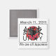 "Kessoku" den japanska kanji-tecknet för Unity över en röd globe som antyder den japanska flagga. Det tragiska datumet den 11 mars 2011 och mottot "Vi är alla japaner".