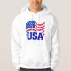 Ett fet typografiskt mönster där brev "USA" sömlöst blandas in i ett svepande grafiskt inslag - vilket tyder på rörelse, anslutning och pride. Utformningen symboliserar en sammanslagning av nationell identitet med en framåtblickande anda som tittar Amerikas energi och mångfald genom visuell harmoni.