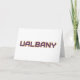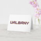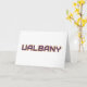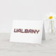 Wordmark Universiteten i Albany har fet geometrisk typografi i lila med guld konturer. Texten är skriven i hela huvudstaden brev och utgör ett starkt och modernt stil som betonar universitetens identitet. Teckensnittets angulära linjer och vassa kant skapar en känsla av makt och professionalism. Konturen i guld ger en aning prestige och synlighet och skapar ordmärket på både ljus- och mörk bakgrunder. Den här designen är perfekt för att profilera idrottslag, varor och universiteten-relaterade medier.
