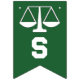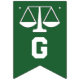 Kreativets advokatadvokat, studenten grattiss banderoll, med en rättvisekalmatur med gröntens bakgrund.