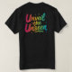 En fet t-shirt-design med texten "Unveeil the Unsee" i en sjudande övertoning av multifärgaden. Varje ord övergår jämnt till nästa, vilket skapar en mäteffekt.