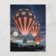 3 hot air balloons in the colors of the American flag in a night flight, under a starry sky, on a full moon evening.