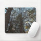 Det här fotot tar tittarens blickar uppåt genom det vridda och insnärjda grenar på ett tämligen ojämna, tittar, gröna träd.
