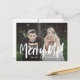 Fira den magiska och festliga julhelgen med vår anpassningsbar helgdag - nya julfotopapper. Vår moderna helgdag av elegant har en fotolayout med designade "Merry Up" i en modern stil för handskrift av trendig i vit brev. Den omvända sidan har "God jul" i ett modernt trendig-manusskrivtypografi i svart och personlig med adress och hälsning. Du kan anpassa texten storlekt, färg, teckensnitt och layout för din egen personliga designinställning.