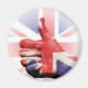 En stor tumme upp "som" med Union Jack flagga målad på en hand. I bakgrunden är Union Jack... Underbara gåvor till patriotiska helgdagar, en soldat eller till och med en födelsedag.