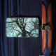 Få ut ditt bagage på en karusell med unika märkre! Denna bagagetagg visar hur grund ser på ett mycket högt tulpanformat träd som tittar upp till toppen. Den blå vriden himlar skapar en intressant lacy abstrakt mönster av silhuetterad trunk och grenar. Den här stora gamla träd bor i Robert H. Treman State Park i Ithaca, New York. Anpassa baksidan med din personliga information.