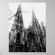Svartvit foto på framsidan av St. Patrick's Cathedral i New York City