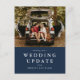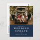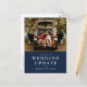 Behöver du ställa in eller skjuta upp bröllop på grund av en olycklig katastrof? Pandemi? Orkanen? Död i familjen? Skicka ett meddelande till vänner och familj med det här enkla och smakfulla vykortet. I baksidan finns ett stort textblock med anpassningsbar med förslagna formuleringar. Det finns också utrymme för er att underteckna det. Framsidan har en marin blå bakgrund med vit text tillsammans med ett fyrkantigt foto. Färg kan redigera genom att klicka på anpassa. Perfekt för dräktiga och koronavirus par.