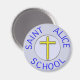 Den uppdaterade Blue/grått- och guld Saint Alice-skolpatchen på en rundmagnet. Underbar för kylskåp eller annan magnetisk bulletinkartong eller vit kartong.