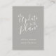 Uppdatering till planen bröllop avbokningskort är en del av den matchande enkla typografiska hjärtat grå vita bröllopssetet. Perfekt att använda som ett bröllopsinformationskort för att informera dina gäster om ett bröllop eller evenemangsavbokning eller ombokning. Andra färgalternativ finns tillgängliga. Originaldesign av www.mylittleedenweddings.com och www.mylittleeden.com på Zazzle.