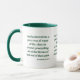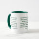 Den här tvåtonsskriften mugg har ett obetydligt extrafet utskrift med grönt brev som visar KJV-bibelskriften "Revelation 22:1" vänd över en vit bakgrund. Den här versen refererar till det 22:a kapitlet Bok i avslöjande som visar 1:a verandan i detta bibelcitattema från Kung James bible. Behållaren och fälgen är glaserade i motsvarande färg i 11 eller 15 uns stora mikrovågsugn och säker keramikkonstruktion av diskmaskiner.