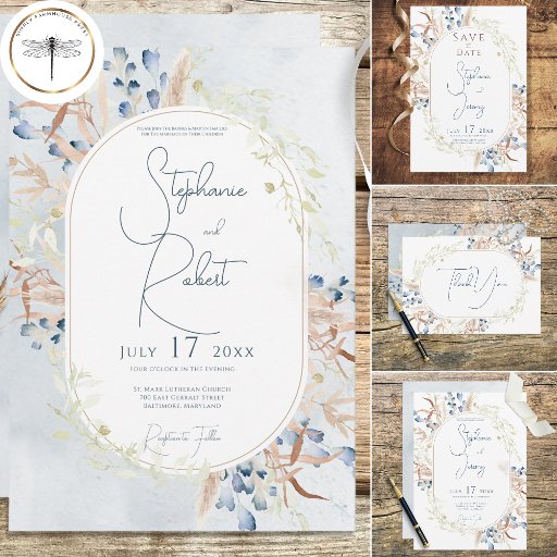 Blue Dried Boho Flowers Wedding SuiteDesignad av Kathe Santillo