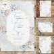 I bröllop beskrivs kortdesignen ram av tan, ljussken grönt och blåtorkade blommor med blå vattenfärg tvättar bakgrunden. Baksidan är vackra vattenfärgsblå tvätta. Kortet är en del av Blue Dried Boho Flowers Suite av kort som skapats av enbart Farmhouse Press.