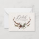 Budgetkort för Rustic foliage, blommigt- och stentagningsantlers bröllop. Med vackra vattenfärgade blad, vita blommigtar, träsegment och manuskript. Detta moderna inbjudan kommer säkert att sätta stil för ert kommande party.