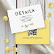 Kortet Butter gul ros-blommor QR bröllop - detaljerat omslutningskort. Detta kort är inte bara ett tillbehör utan ett konstens biet, försett med ett känsligt smör gul ros. Löven i ro och grönt är placerade på kortbasen och ger en förtjusande bild som kompletterar din bröllop blommigt motif och anger en serene- och elegant-ton för tillfälle. Dessutom tjänar kortet ett praktiskt syfte genom att inkludera en QR-kod, som gästerna kan söka igenom med sina smartfoner. Med den här nyskapande funktionen kan de utan problem få tillgång till webbplatsen bröllop, där de kan hitta alla nödvändiga detaljer om ceremonin, mottagningen och andra relaterade evenemang, så att de kan få tillgång till all information som de har tillgång till utan att behöva använda ytterligare trycksaker. Den här kombinationen av skönhet och nytta gör att kortet för djurutrymme både är en dekorativ och funktionell inslag i din bröllop-kontorssvit.