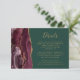 Den lämnat kant i eleganten har ett kort för modern detaljrikedom i bröllop ett inhägnat vattenfärgsagat i gräns som trimmas med faux guld glitter. Rubriken visas i handskriftsskript, med anpassade nedanför i guld-färgadens typsnitt på en bakgrundsbild för grönten. Den bakomliggande sidan har en matchande burgundi och guld-agate-design.