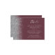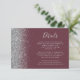 Den lämnat kant i denna elegant har ett modernt-kort för detaljdetaljer i djurutrymmet i bröllop som har silver faux glitter. Med anpassadet kombineras handskrift av blek silver grått, tryckplåt och kursivt typsnitt på burgundbakgrund. Den bakomliggande sidan har en matchande burgundi- och silver glitter-design.