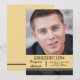 Ett modernt examensbevis med ordet "Graduation" i ett invecklat mönster. Den gyllene basen har två horisontella linjer längst ner.